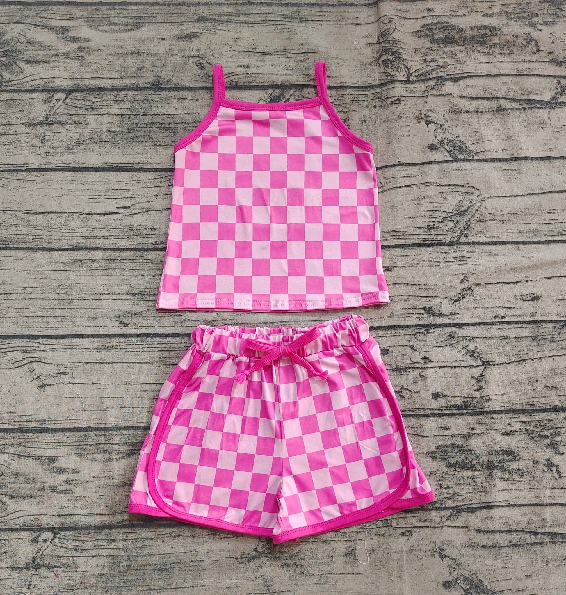Baby Girls Pink Strap Plaid Top Short Sports Sets: 4T