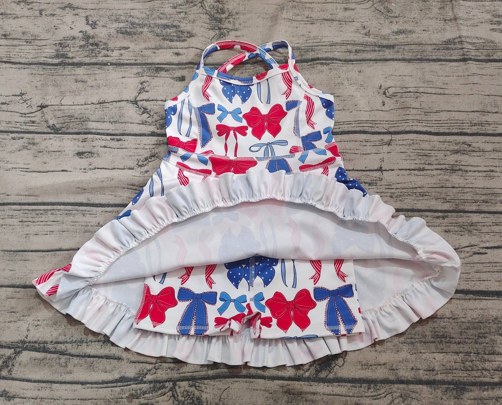 Baby Girls Strap Blue Red Bows 4th Of July Yoga Active Knee Length Dresses: 4T