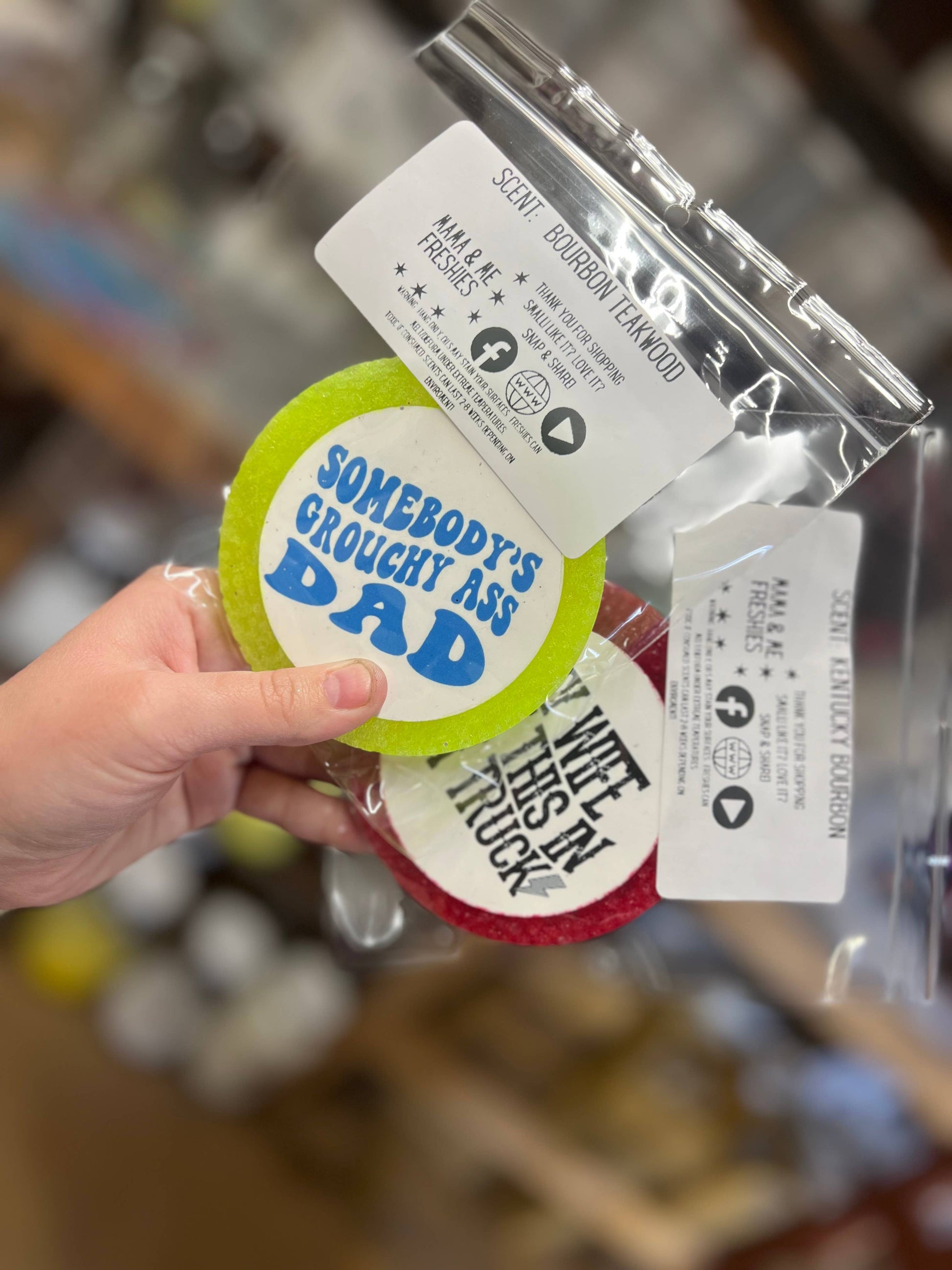 these air fresheners that can be used in small spaces like cars, lockers, drawers, and closets. They are often handmade and can come in a variety of scents