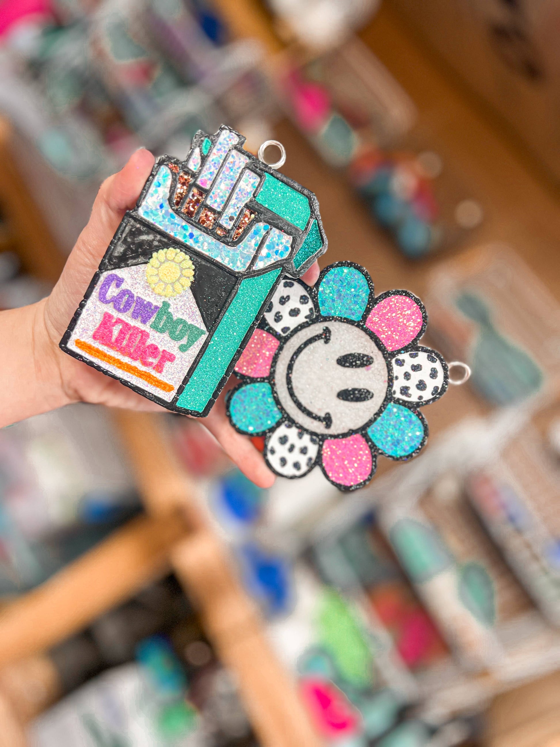 This is a fun, spring filled car freshener! Each design is unique, and may vary but this continues to be a top seller for us! these air fresheners that can be used in small spaces like cars, lockers, drawers, and closets. They are often handmade and can come in a variety of scents.